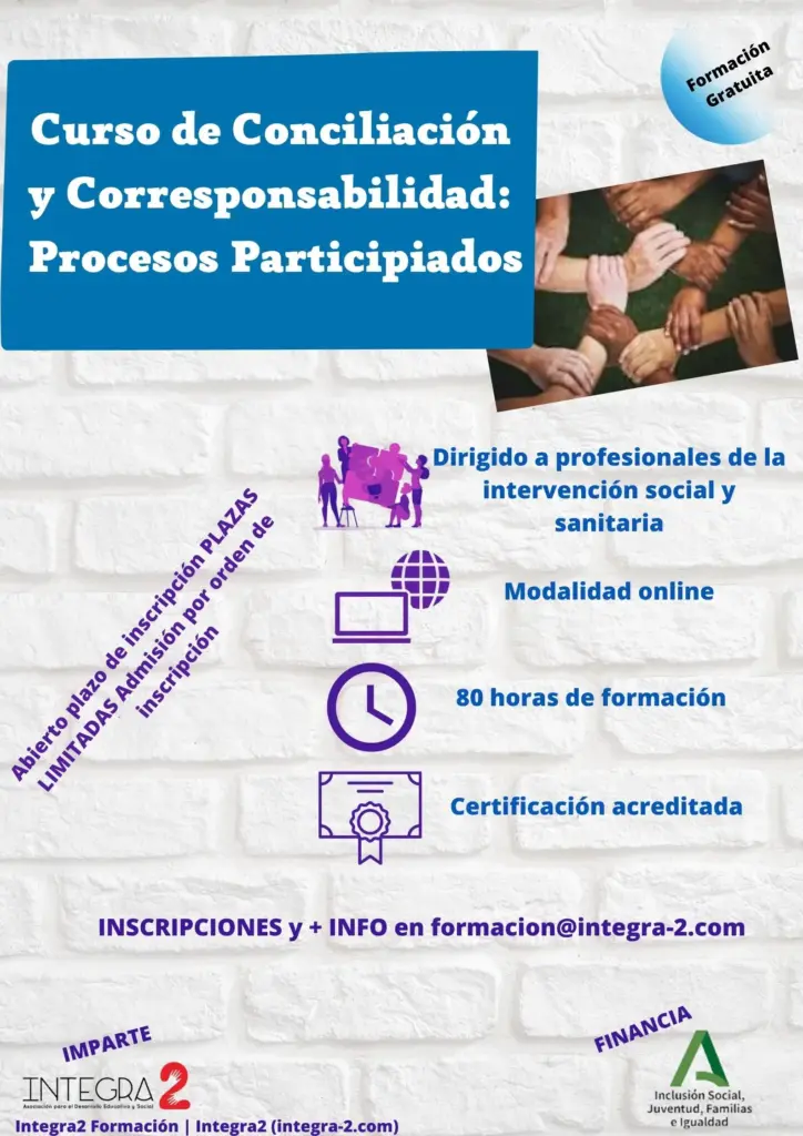 La acción formativa Conciliación y Corresponsabilidad: Procesos Participados, financiada por la Consejería de Inclusión Social, Juventud, Familias e Igualdad de la Junta de Andalucía está dirigida a personal trabajador del ámbito social y del ámbito sanitario y que desarrolla su labor en las provincias de Almería y Granada siendo sus objetivos los que se detallan a continuación: