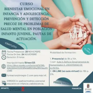 Jornada formativa “Bienestar Emocional en la Infancia y Adolescencia. Prevención y detección Precoz de Problemas de Salud Mental en población Infanto Juvenil. Pautas de actuación