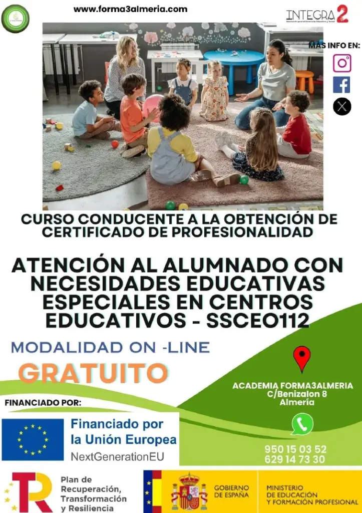 El Proyecto Formativo está formado por 16 módulos impartidos en modalidad online. Todos ellos se encuentran asociados a las distintas Unidades de Competencia que conforman la Cualificación Profesional y el Certificado de Profesionalidad de Atención al Alumnado con necesidades educativas en centros educativos SSCEO112.